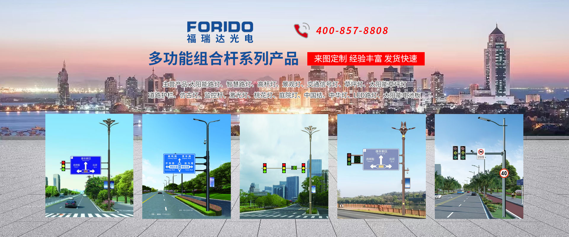 揚(yáng)州福瑞達(dá)光電科技有限公司位于淮左名都?xì)v史文化名城、中國路燈制造基地?fù)P州市北郊菱塘工業(yè)園,公司占地面積76000平方米,注冊資金10518萬元,擁有高級技術(shù)嫻熟的員工280多人,擁有大型折彎機(jī)、激光切割、數(shù)控注塑機(jī)、壓鑄機(jī)、自動埋弧焊、氣焊、彩色粉末靜電噴塑等大型自動化設(shè)備,我公司是一家集設(shè)計、研發(fā)、生產(chǎn)、銷售、施工安裝服務(wù)為一體的戶外交通照明產(chǎn)品制造商,主要生產(chǎn)智慧路燈、太陽能路燈、LED路燈、高桿燈、景觀燈、交通信號燈、交通標(biāo)志牌、通信鐵塔、路跨鋼結(jié)構(gòu)、公交站臺、太陽能光伏組件、景點亮化、樓宇亮化工程的設(shè)計施工等。公司秉承開拓創(chuàng)新、銳意進(jìn)取、精誠服務(wù)的企業(yè)精神,堅持以“誠信為本、技術(shù)為先、服務(wù)是金”的合作理念,我們憑借先進(jìn)的制造工藝、優(yōu)質(zhì)的產(chǎn)品質(zhì)量、合理的市場價格和完善的售后服務(wù)贏得了廣闊的市場和客戶的信賴。  我公司已通過ISO9001質(zhì)量體系認(rèn)證、ISO14001環(huán)境管理體認(rèn)證,CQC產(chǎn)品認(rèn)證,中國節(jié)能產(chǎn)品認(rèn)證,通過“CCC”強(qiáng)制性產(chǎn)品認(rèn)證,具有市政總承包,照明,交安,設(shè)計等資質(zhì)···